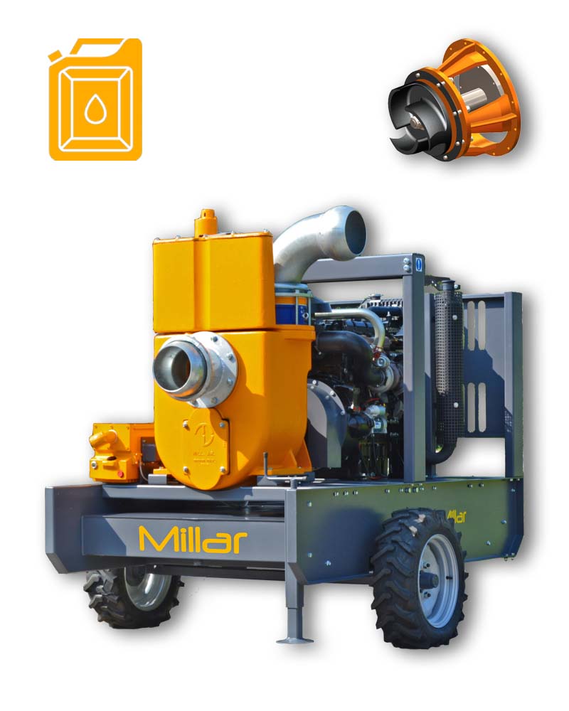 MWP-CD50 Millar — компактна самовсмоктувальна вакуумна дизельна мотопомпа для дренажних і аварійних робіт середньої інтенсивності. Модель поєднує мобільність, економічність та ресурсну конструкцію, що дозволяє застосовувати її на будівельних майданчиках, у комунальному господарстві та на промислових об’єктах.