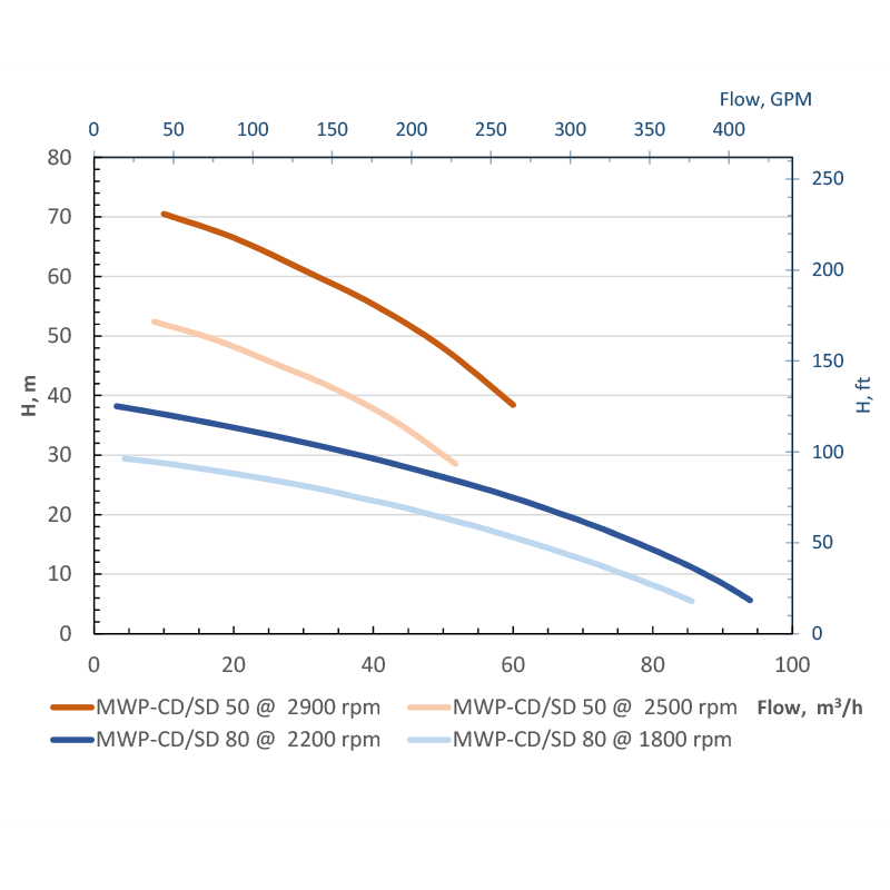 MWP-CD50 оснащена дизельним двигуном із низьким рівнем споживання палива — 213–240 г/кВт·год. Такий показник забезпечує ефективну роботу без перевитрат при тривалих циклах відкачування.